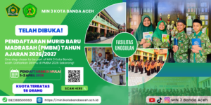 MIN 3 Kota Banda Aceh (Senin, 25 November 2024) melaksanakan upacara memperingati HUT PGRI ke-79 yang dilaksanakan di lapangan madrasah. Upacara berlangsung khidmat yang dihadiri oleh seluruh dewan guru, staf karyawan, ustadz/ustadzah MIN…
